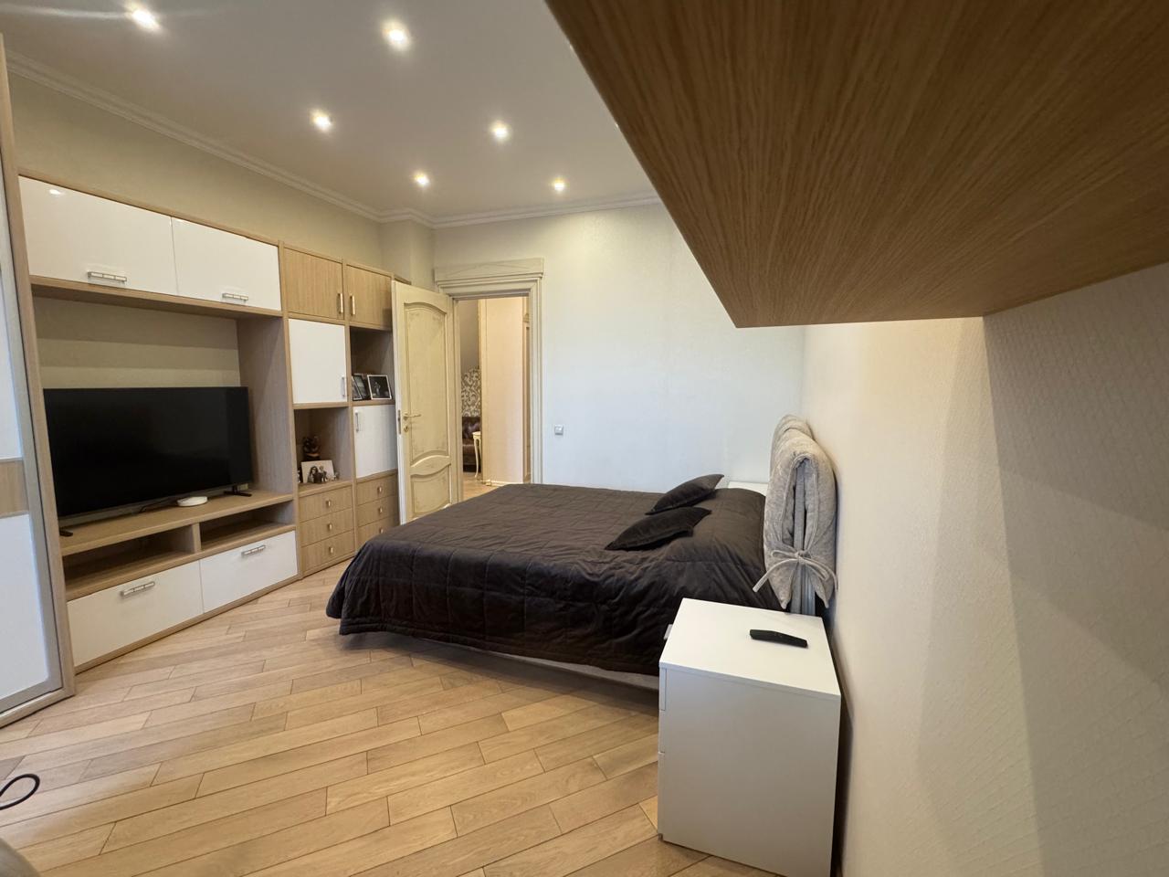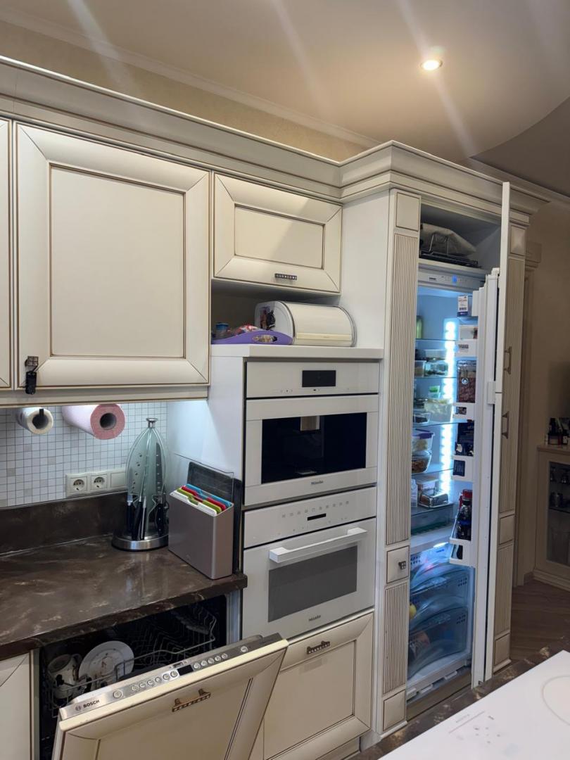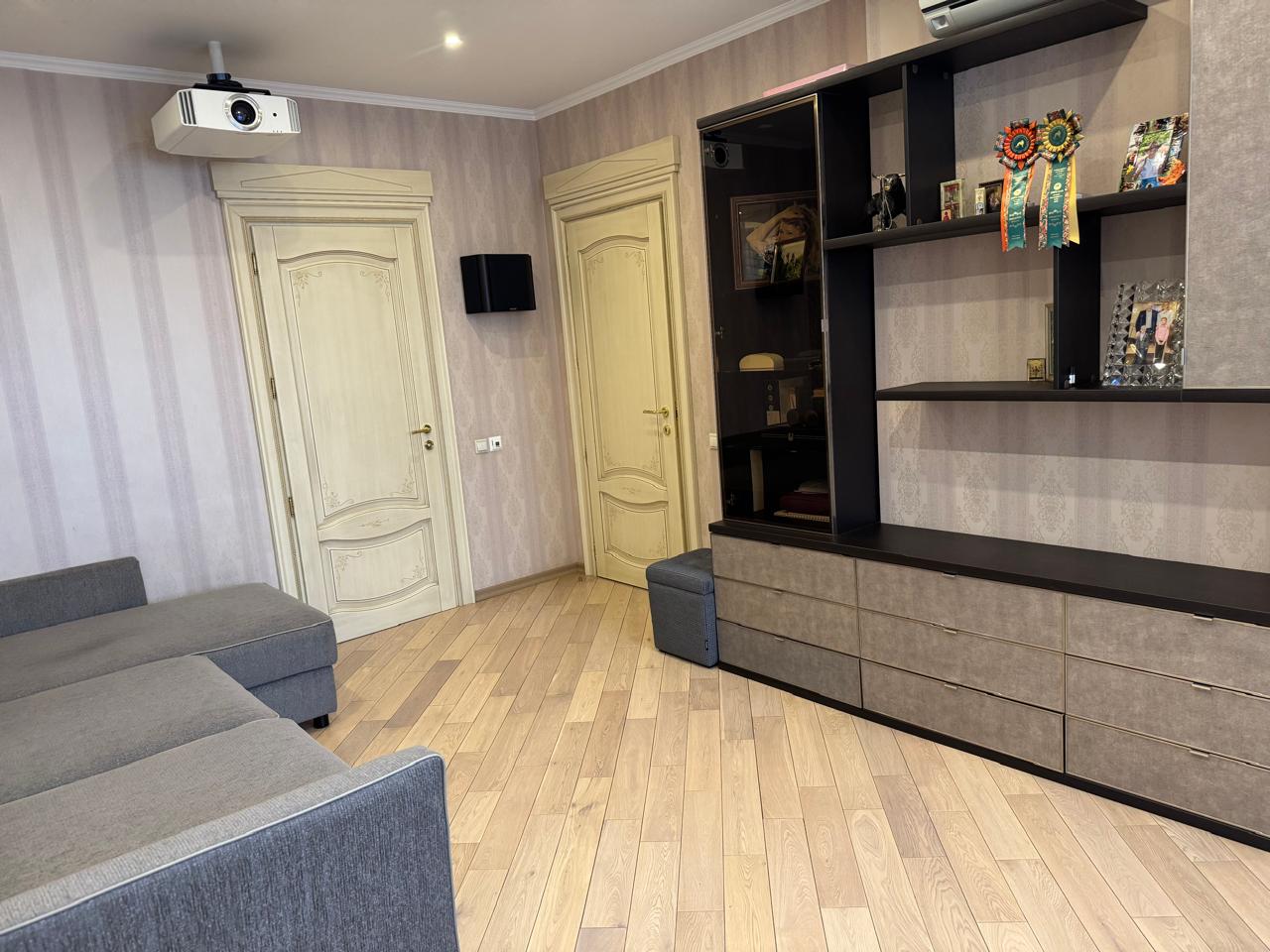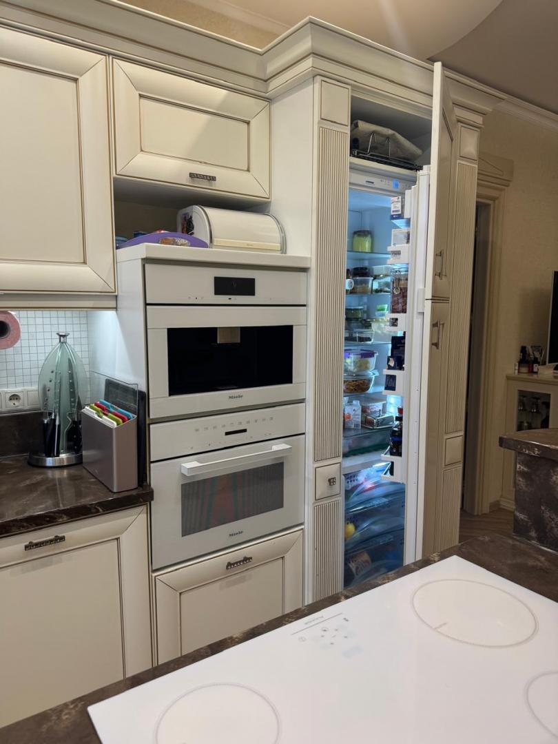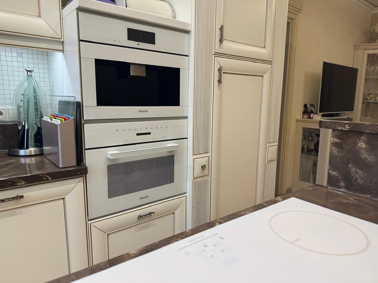 Квартира состоит: из трех жилых комнат, кухни гостиной укомплектованной встроенной техникой и кухонной мебелью , просторной отдельной гардеробной , трех санузлов .